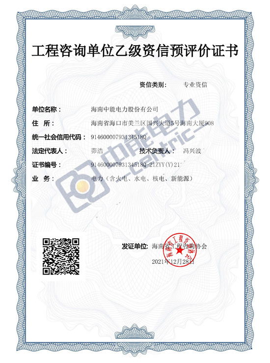 工程咨詢單位乙級資信預(yù)評價證書